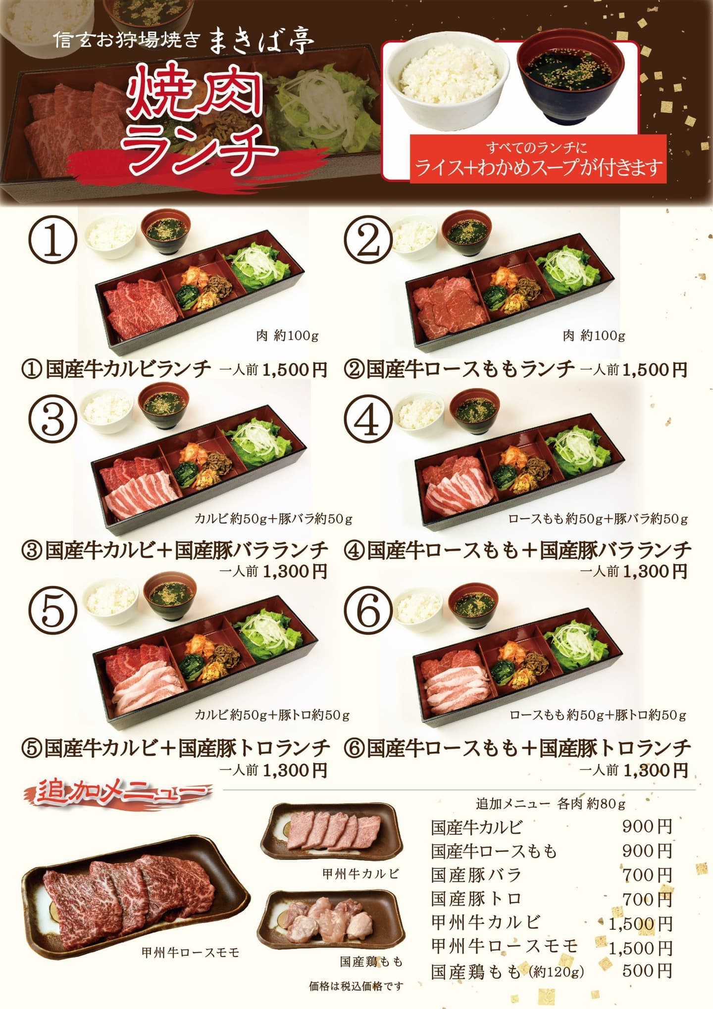 信玄お狩場焼きまきば亭 メニュー
