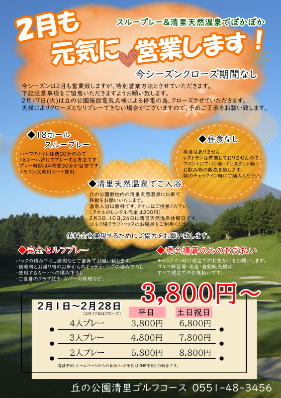 2月のゴルフコースの営業案内